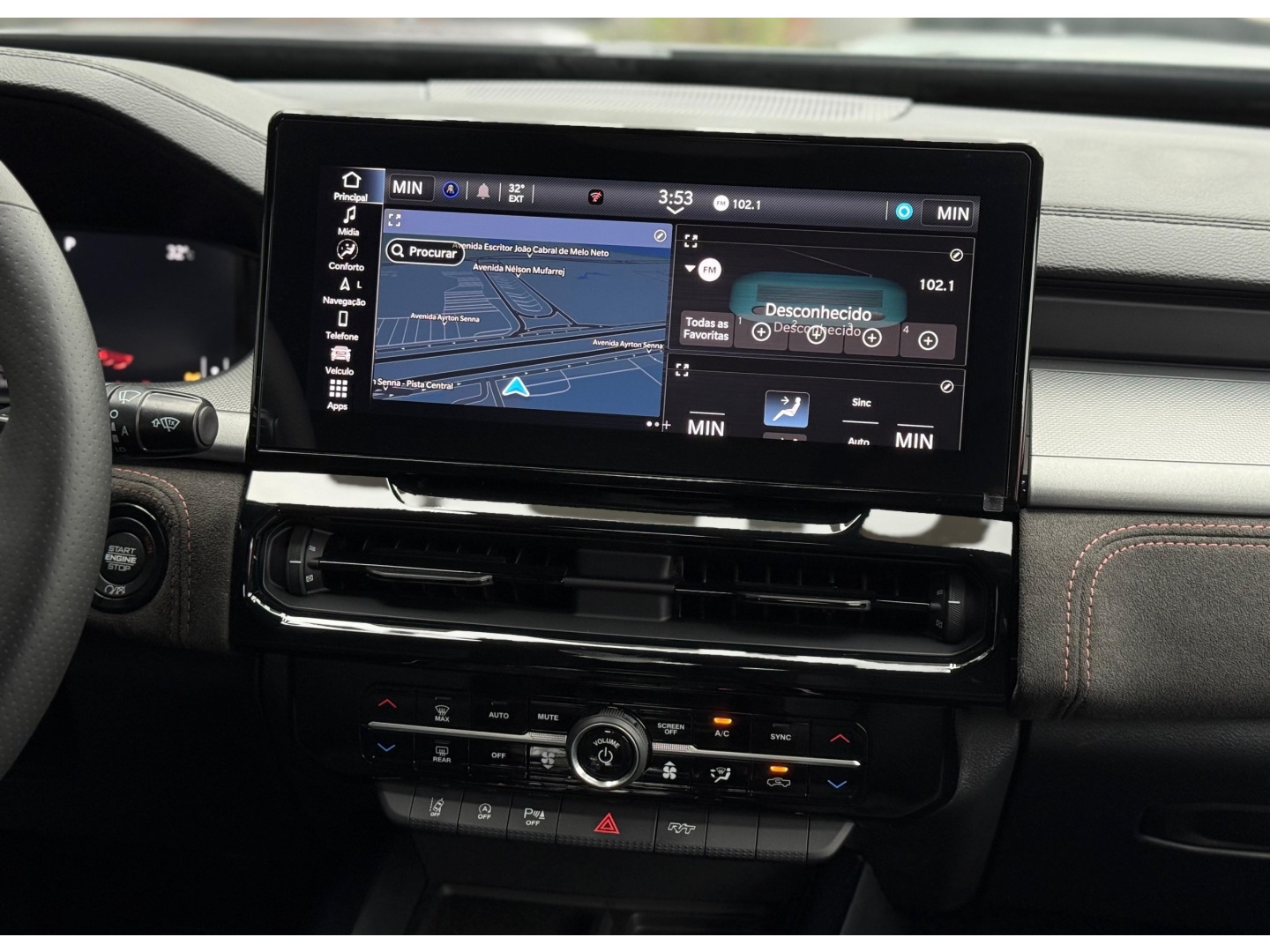• Controle de som no volante